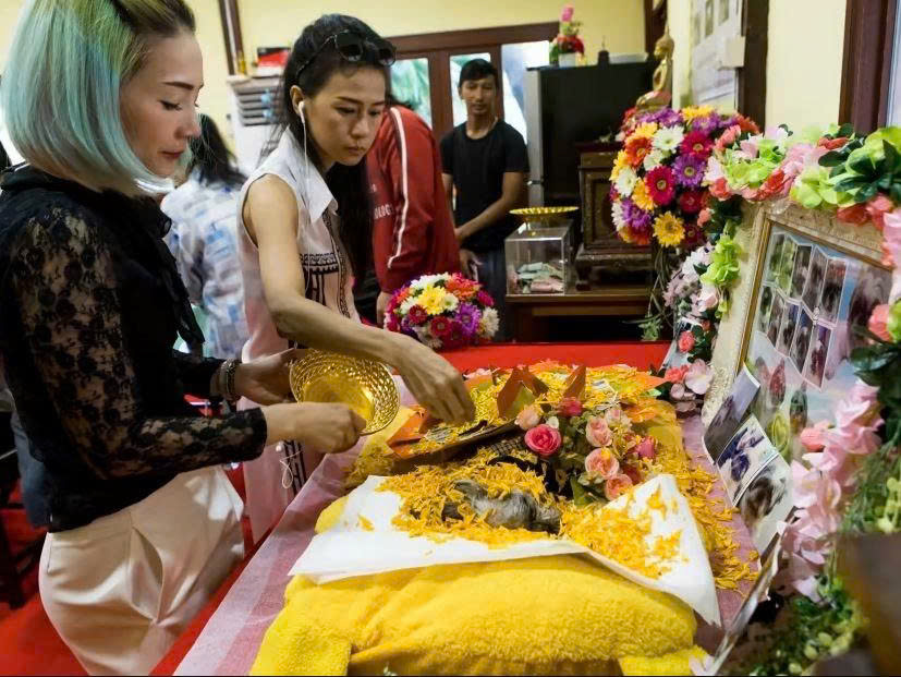 Bé được khâm liệm cùng hoa tươi, nến thơm, khăn lụa và đồ dùng hằng ngày.